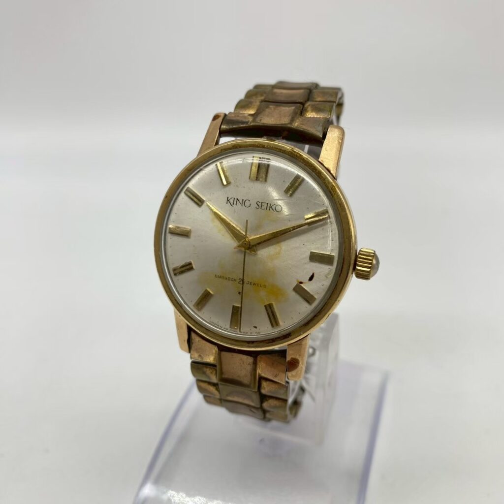 今回お預かりした個体は、経年による文字盤の変色やキズ、ケース・ブレスレット部分のメッキ剥がれなどが見受けられる状態でしたが、ヴィンテージ時計としては十分に価値のあるお品物。特にキングセイコーは、状態が悪くてもコレクション需要が高く、パーツ取りやオーバーホールを前提に探している方も多く存在します。動作不良や外観ダメージがあっても、当店では専門スタッフがしっかり査定し、適正価格で買取を行っております。