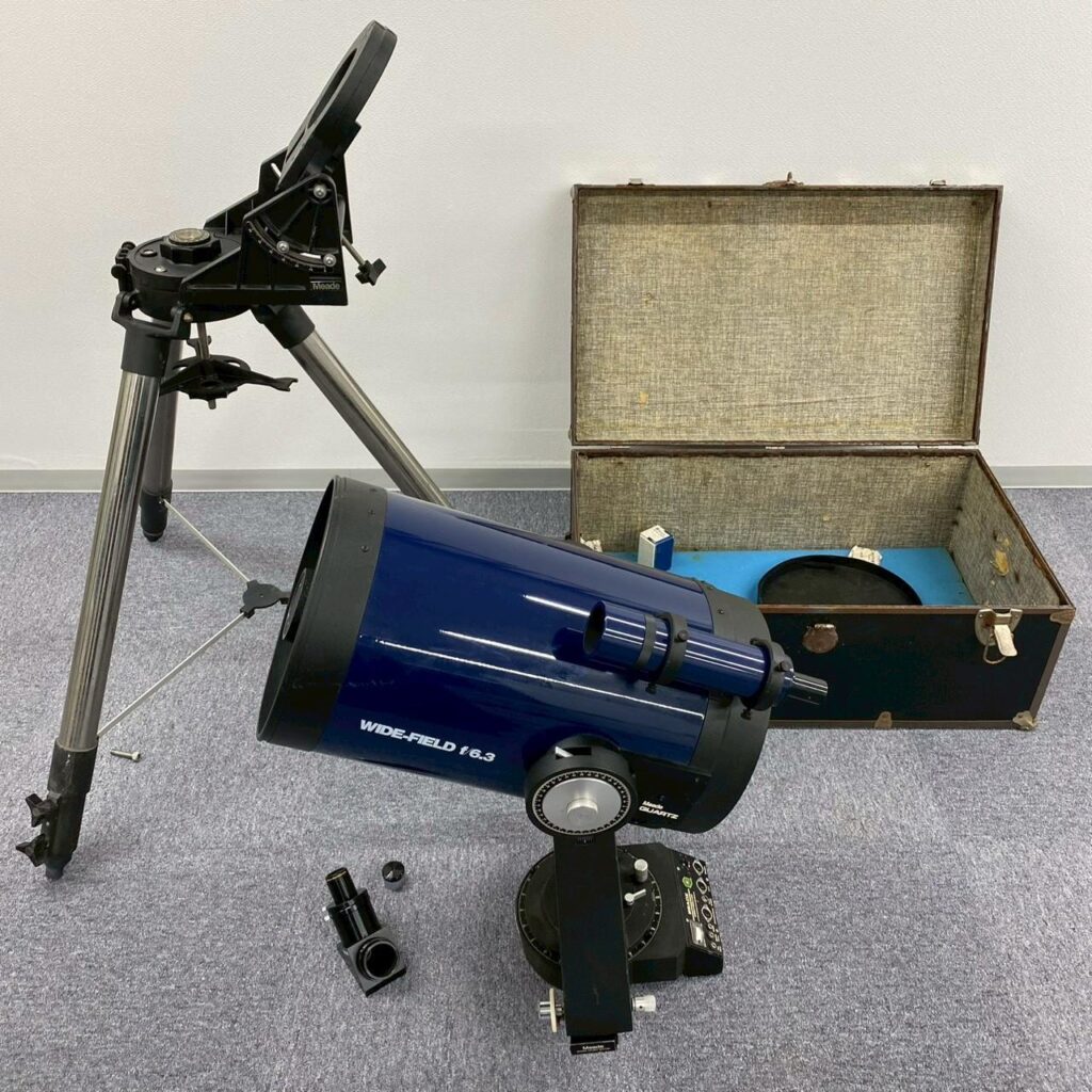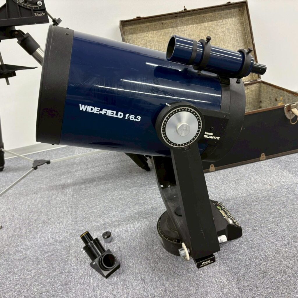 こちらの望遠鏡は、WIDE-FIELD f/6.3 の表記があり、広い視野で星雲・星団などを観察しやすいモデル。天体撮影にも向いており、ビギナーから上級者まで幅広い層が使用できる仕様です。本体の外観には若干の使用感がありますが、光学系は比較的クリアで、MEADE らしい重厚な鏡筒デザインがしっかりと残っていました。