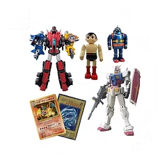 戦隊ヒーローやブリキのおもちゃやガンダムのプラモデルやアニメや漫画で人気のフィギュアや昔流行したポケモンや遊戯王カードなど幅広くお買取させて頂いてます。